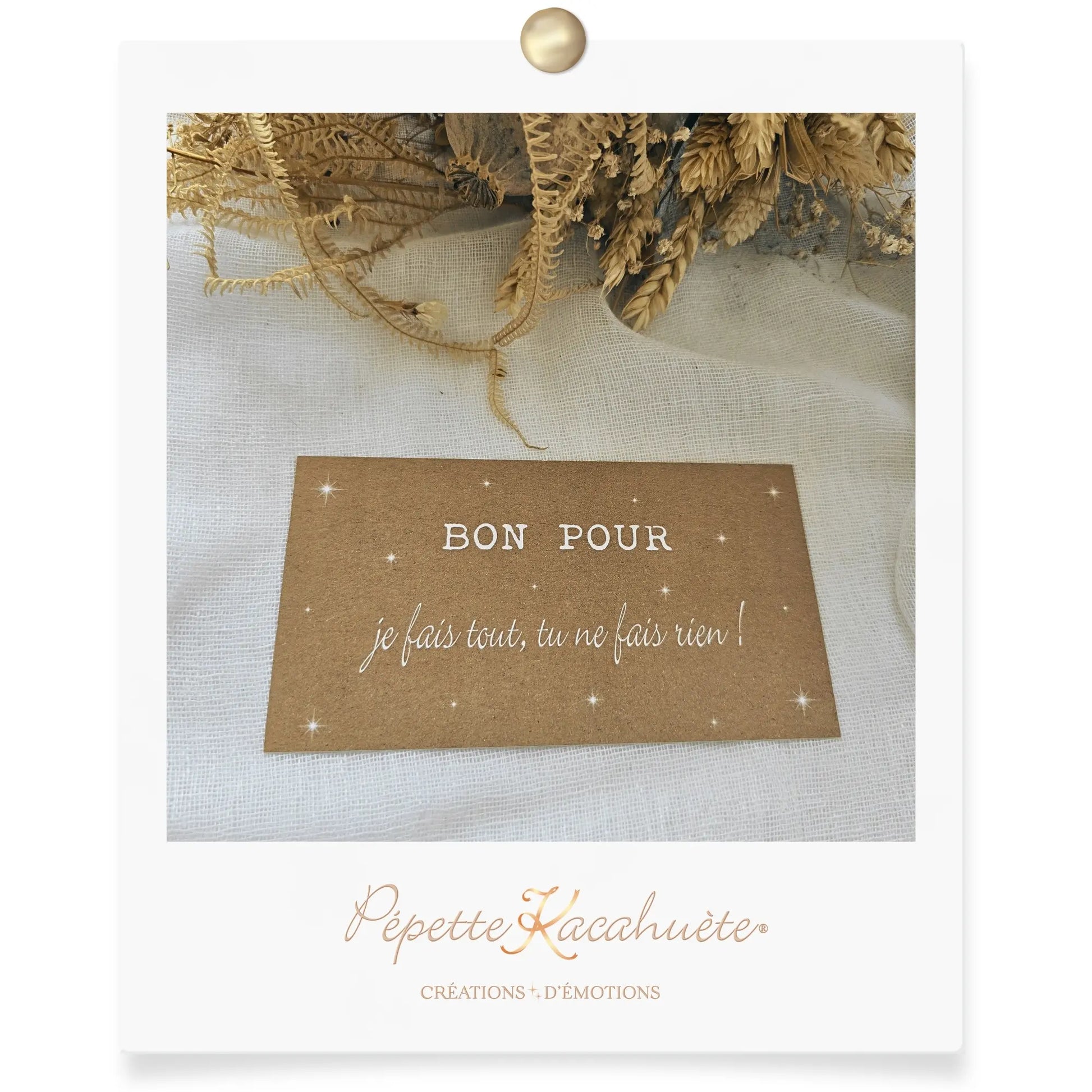 Offrez un petit moment de répit à celui ou celle que vous aimez avec ce bon pour “Je fais tout, tu ne fais rien” !