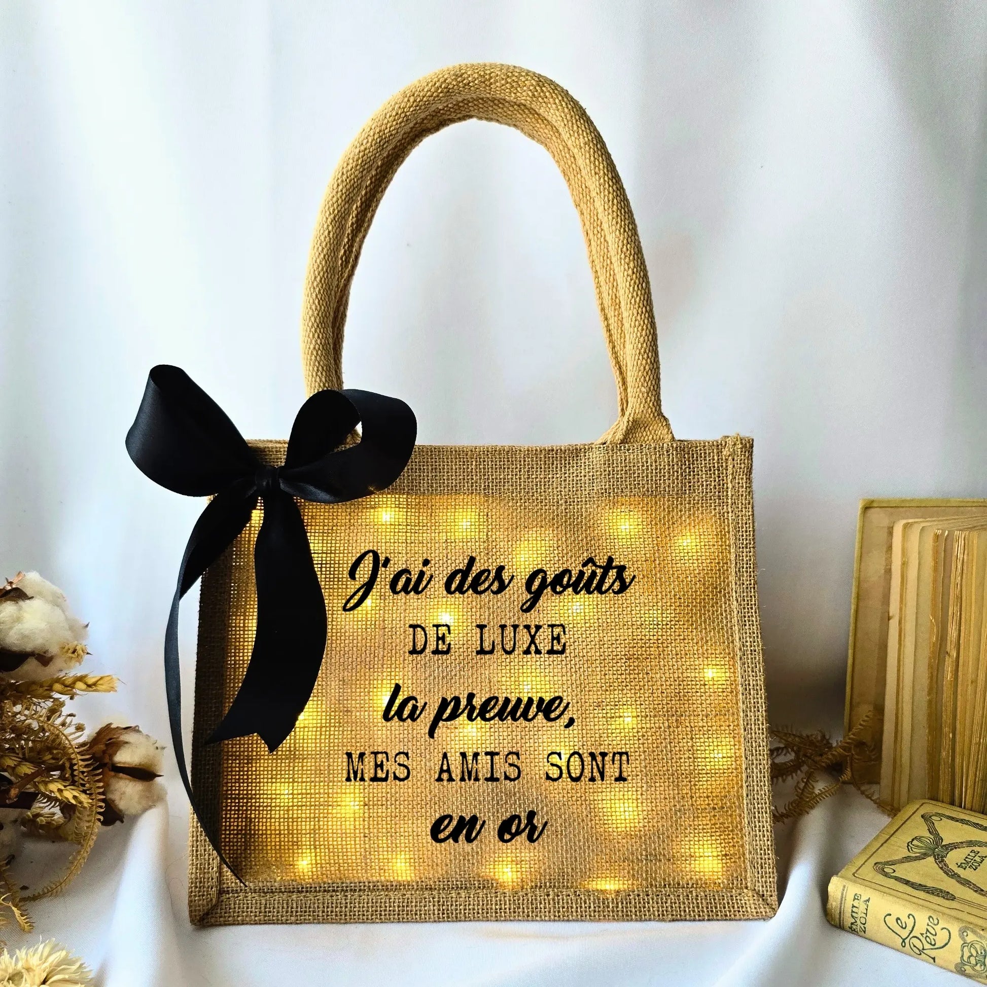 Plus qu’un simple objet décoratif, ce cabas lumineux "amis en or" est une déclaration d’amitié en lumière.