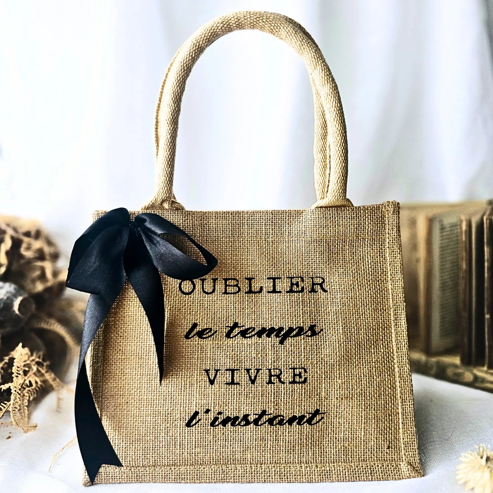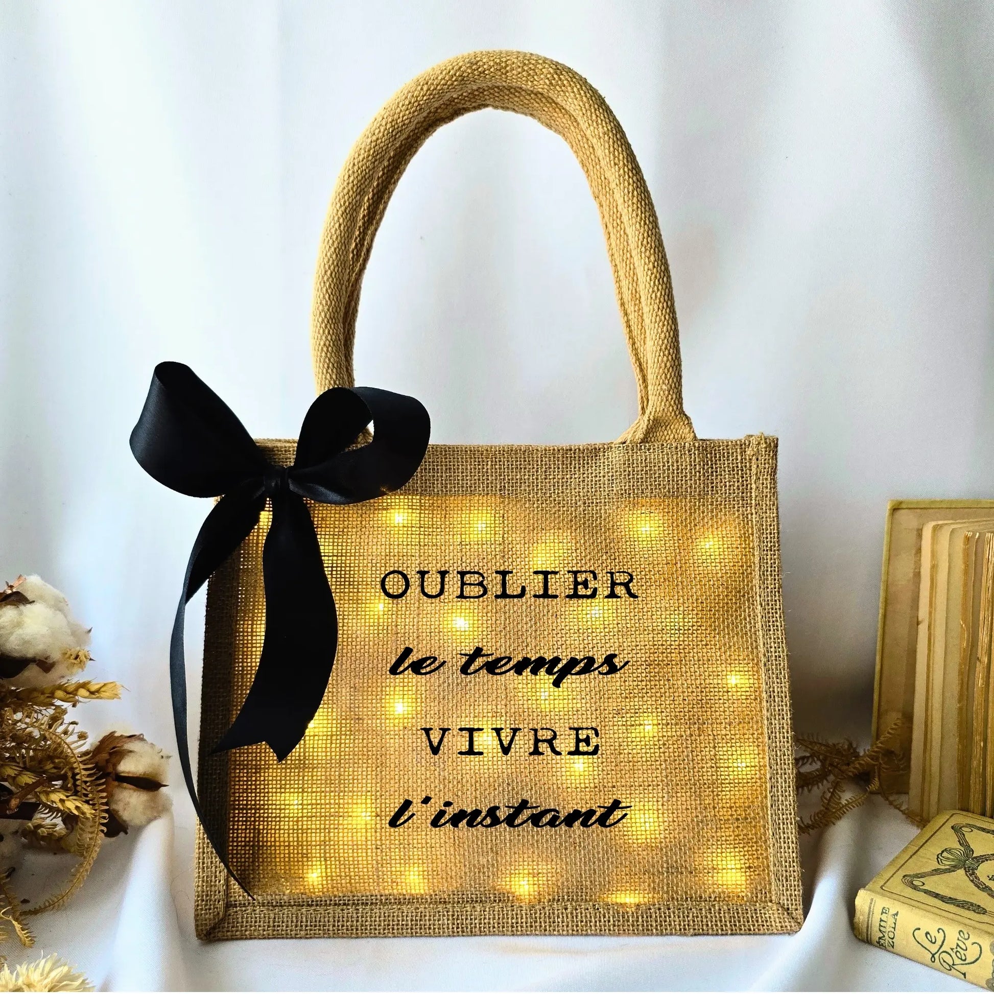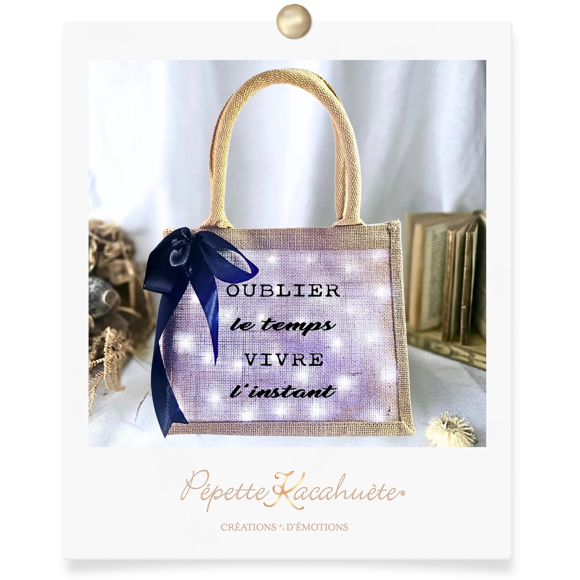 Apportez une touche de poésie et de douceur à votre intérieur avec ce cabas lumineux “Oublier le temps, vivre l’instant”.