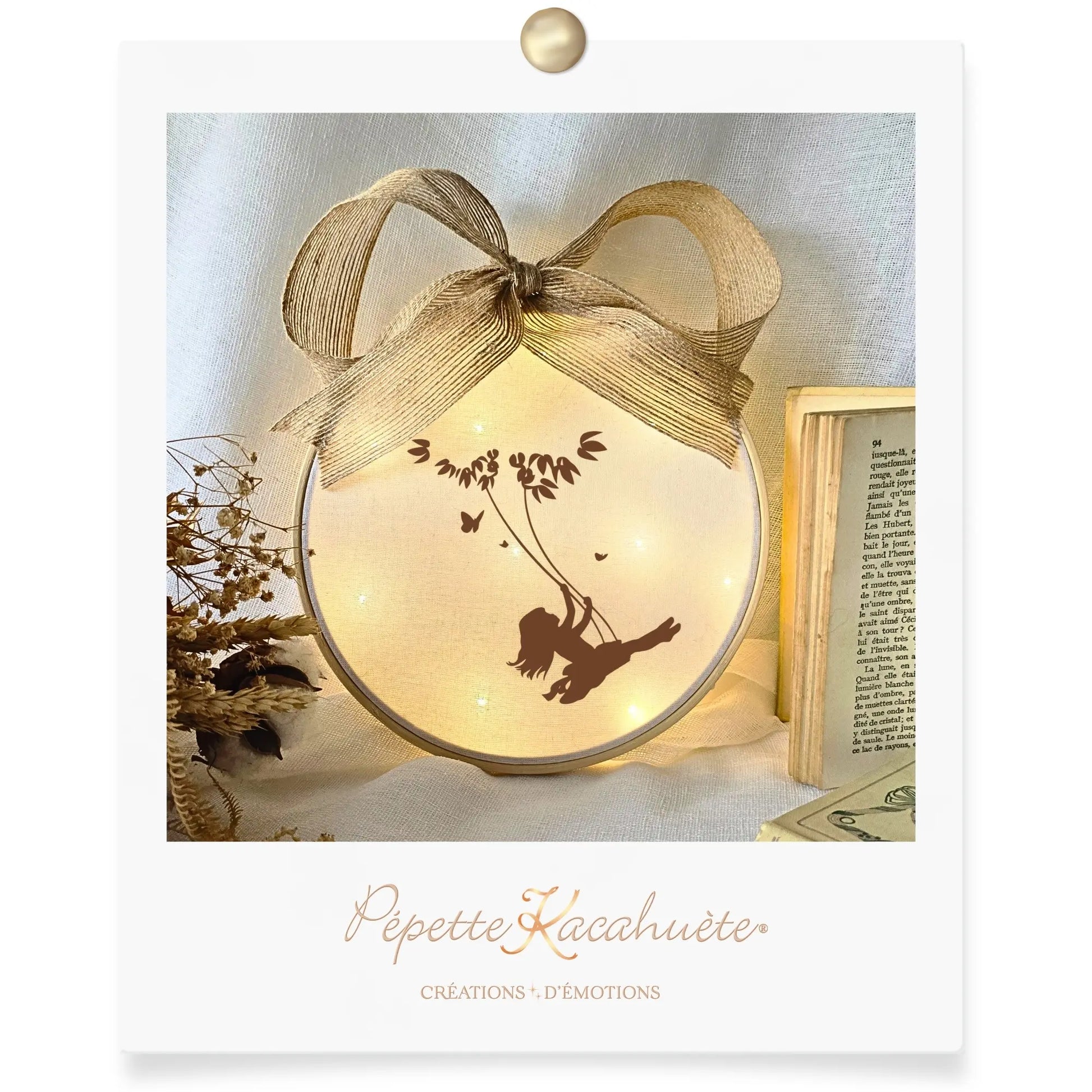 Vous aimerez le cercle lumineux pour son éclairage led doux qui procure une ambiance apaisante avec sa lumière tamisée, son cercle en bois qui lui donne un effet artisanal, son centre en coton ou en dentelle fine, délicate et romantique, son ruban pour un rendu chic et unique.