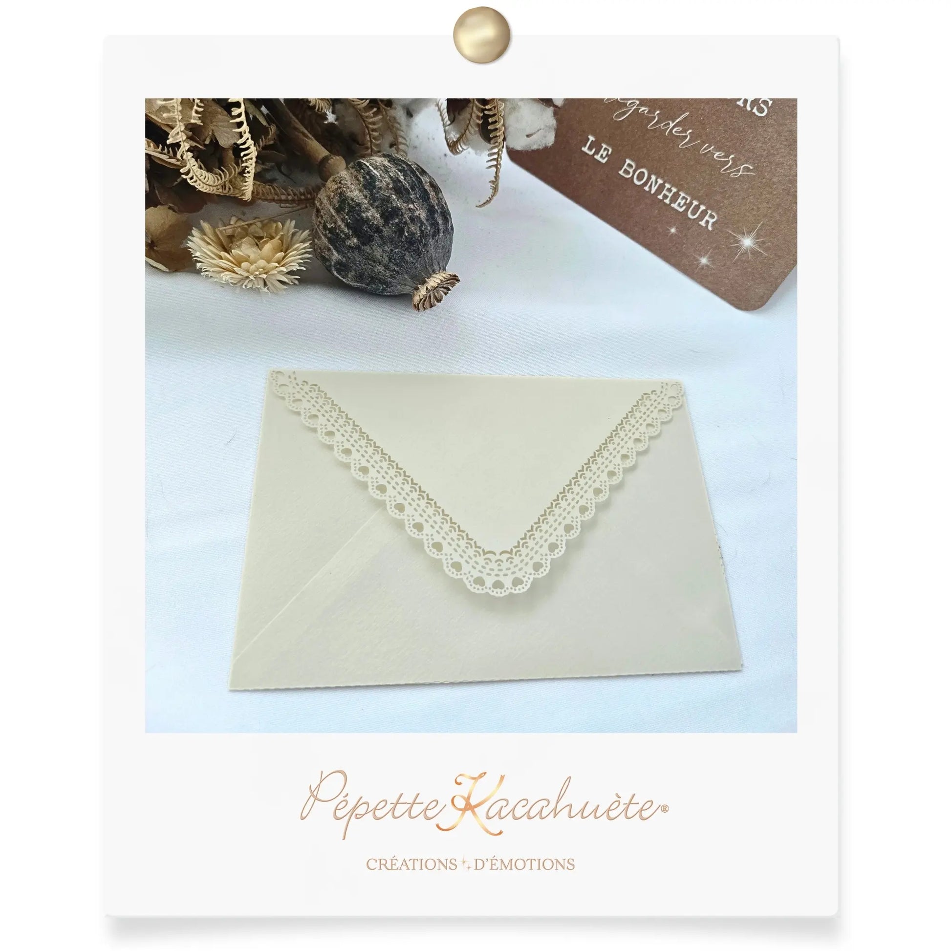 Les visuels des enveloppes Pépette Kacahuète® sont imaginés et réalisés par la créatrice dont ils sont la propriété exclusive (hors les enveloppes dentelles, petites fleurs et liserets).