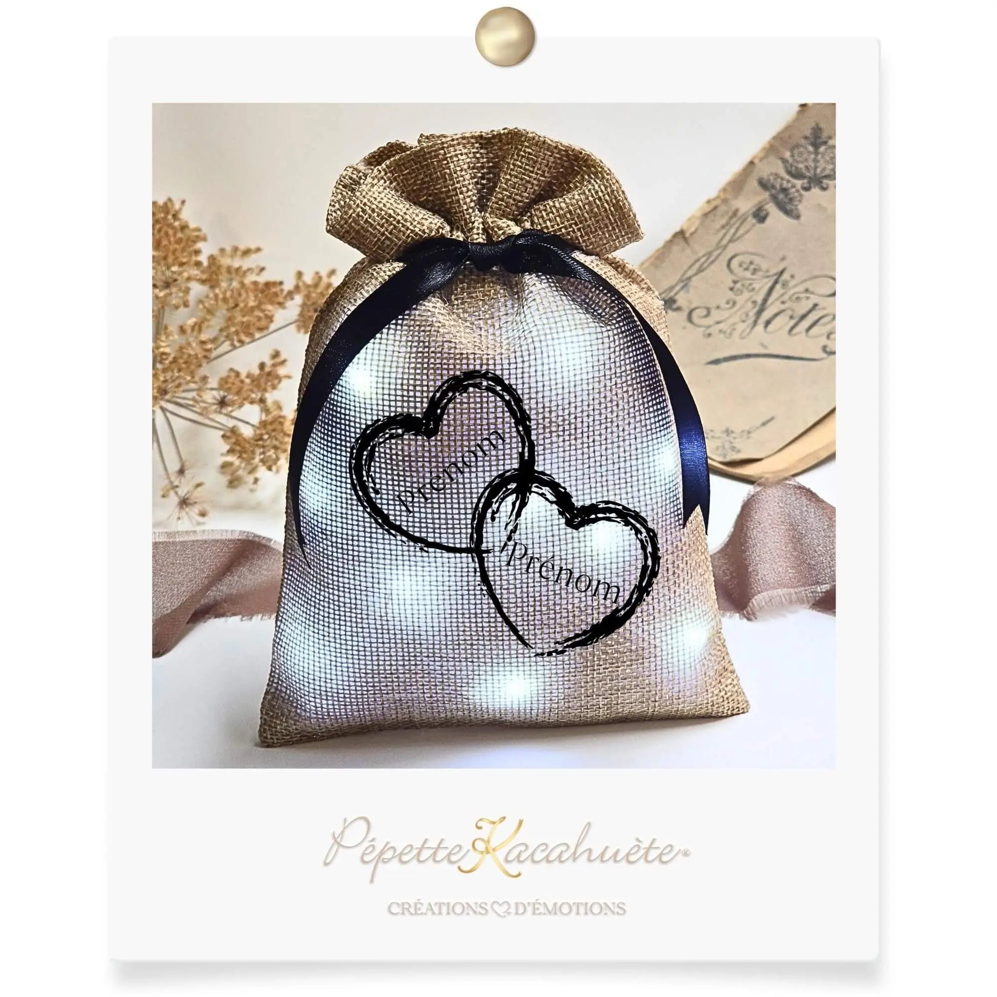 MINI POCHON LUMINEUX COEURS ENTRELACES PRENOMS
