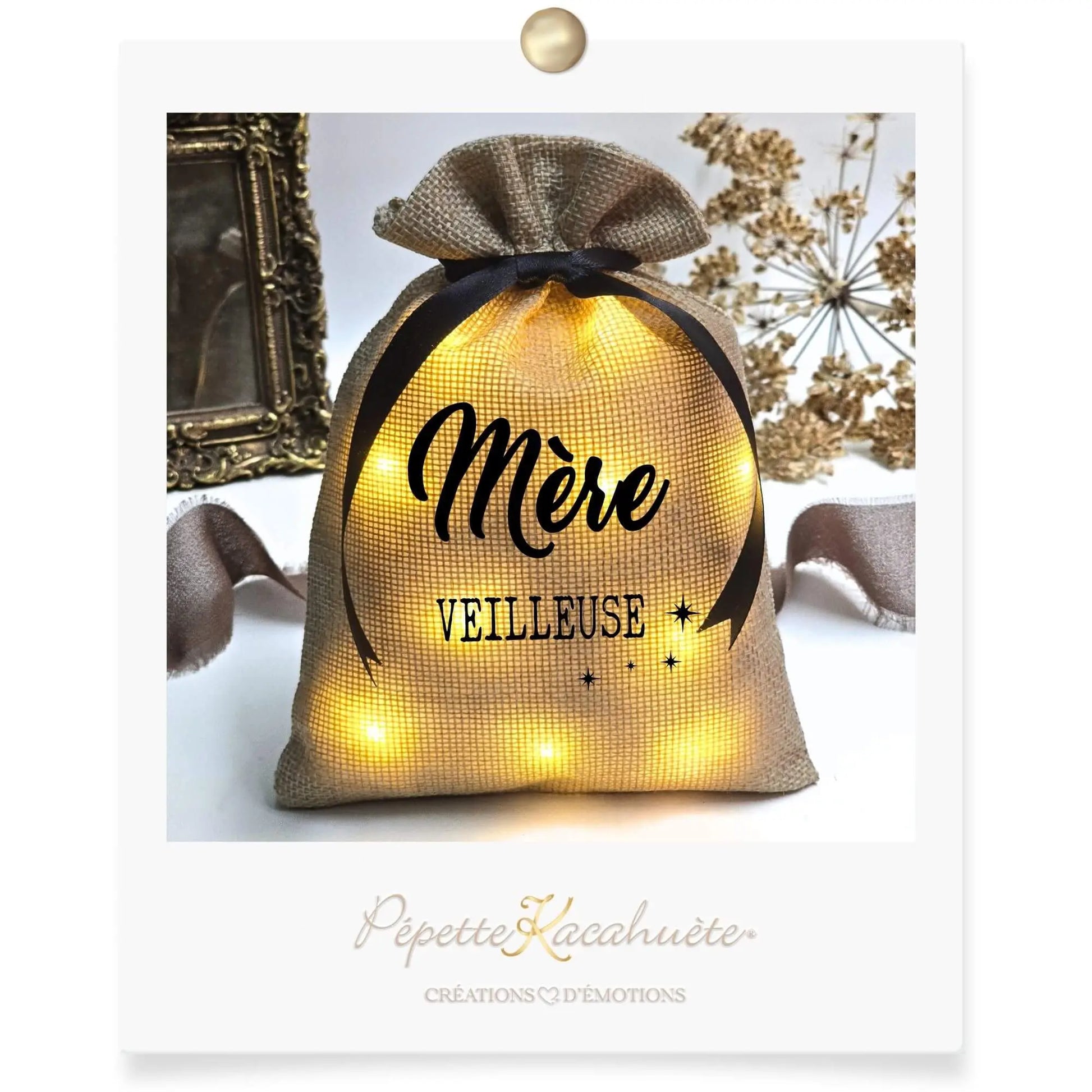 Fabriquée à la main, cette décoration lumineuse apporte une atmosphère chaleureuse à n'importe quelle pièce. Elle constitue un cadeau unique et symbolique pour la fête des mères, un anniversaire ou tout simplement pour dire merci à une maman exceptionnelle.
