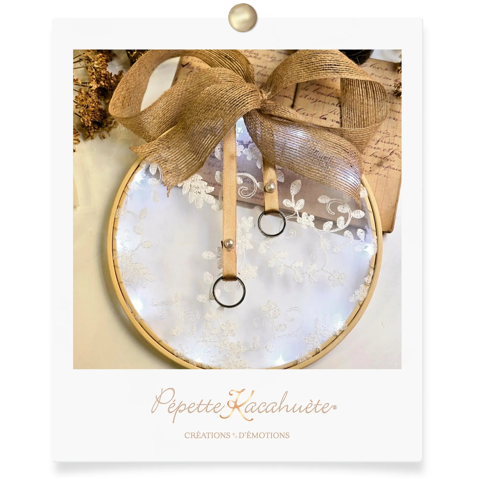 Après le mariage, le porte alliances devient un joli objet décoratif à suspendre ou à poser dans votre intérieur, pour garder la lumière de cette journée inoubliable.